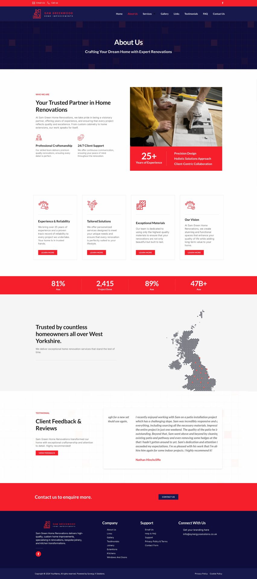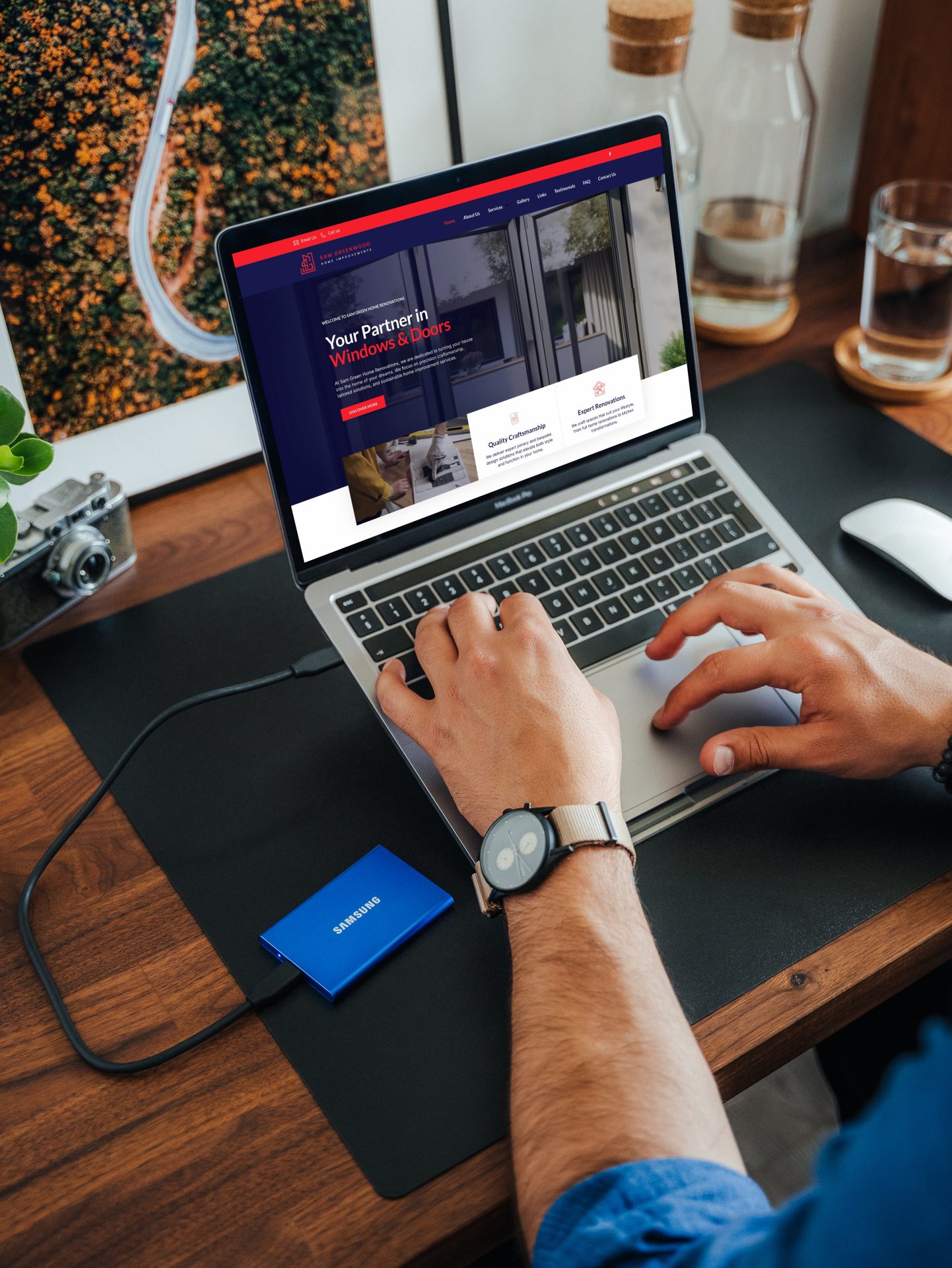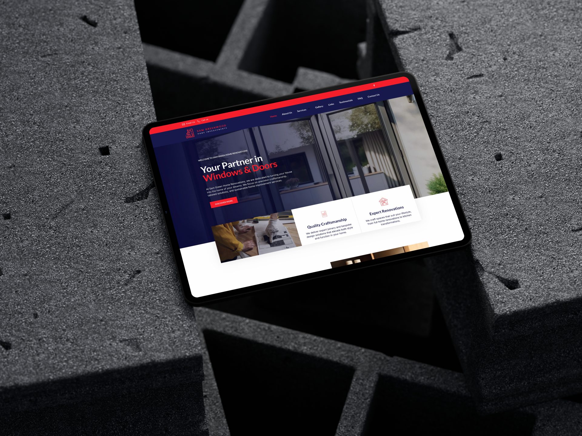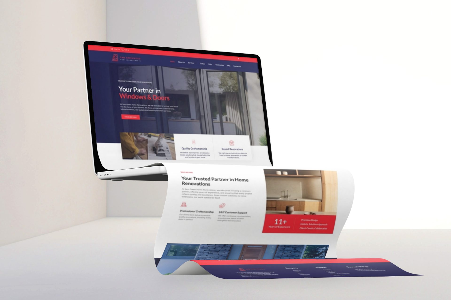 Sam Greenwood Home Improvements is a professional joinery and renovations business based in West Yorkshire. This project involved creating a strong, trustworthy brand identity that reflects Sam’s precision craftsmanship and home transformation expertise. From a bold, geometric logo mark to sleek business cards and a responsive website, each element was crafted to position the business as reliable and skilled in kitchen renovations, extensions, and door and window fittings. The website was developed to clearly communicate services, display real client feedback, and streamline enquiries—helping Sam win trust and grow his business locally.