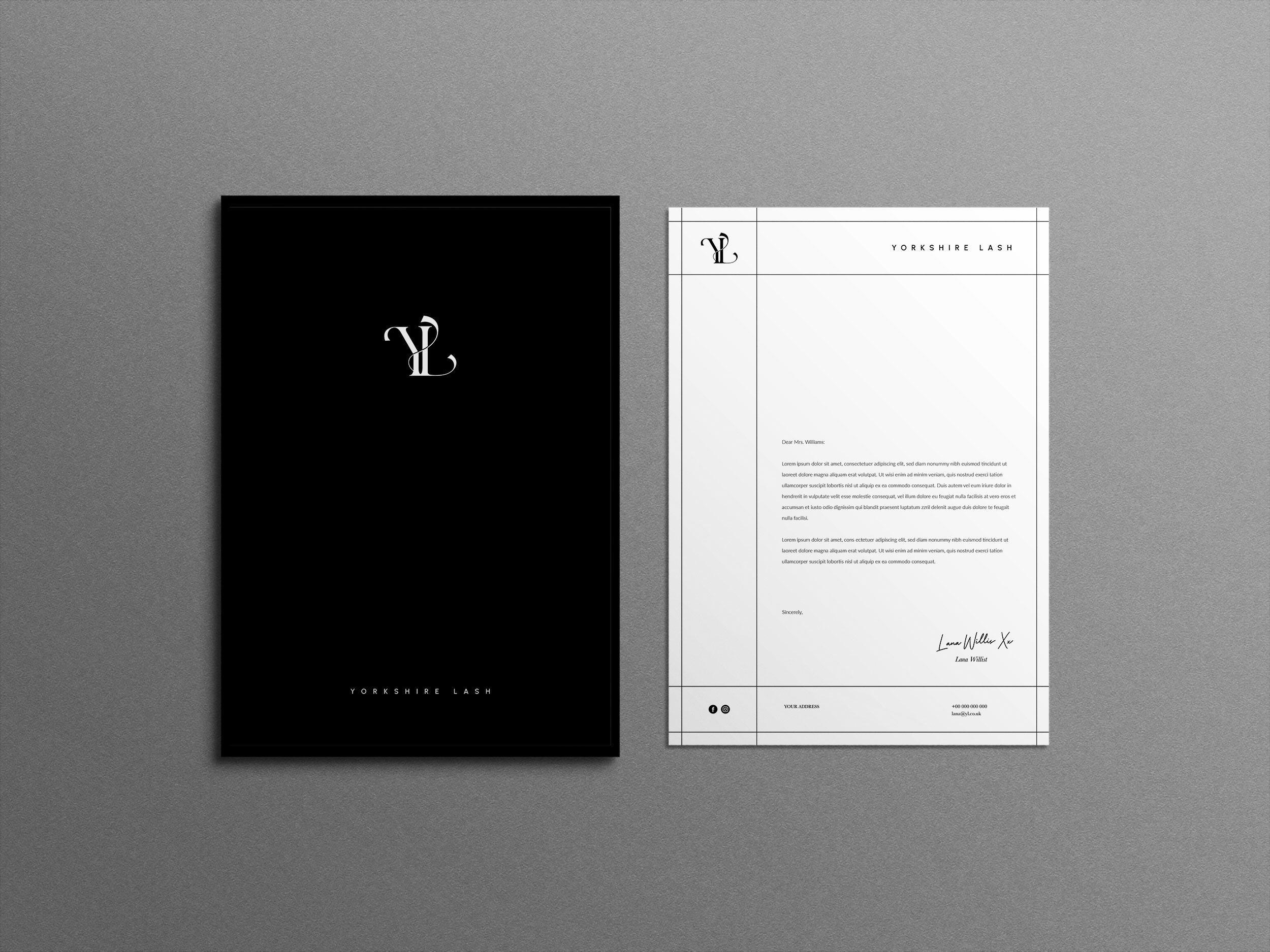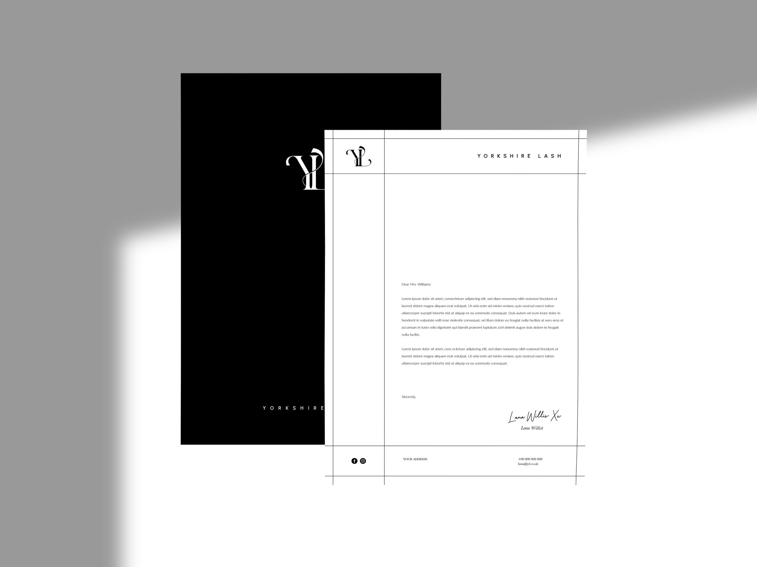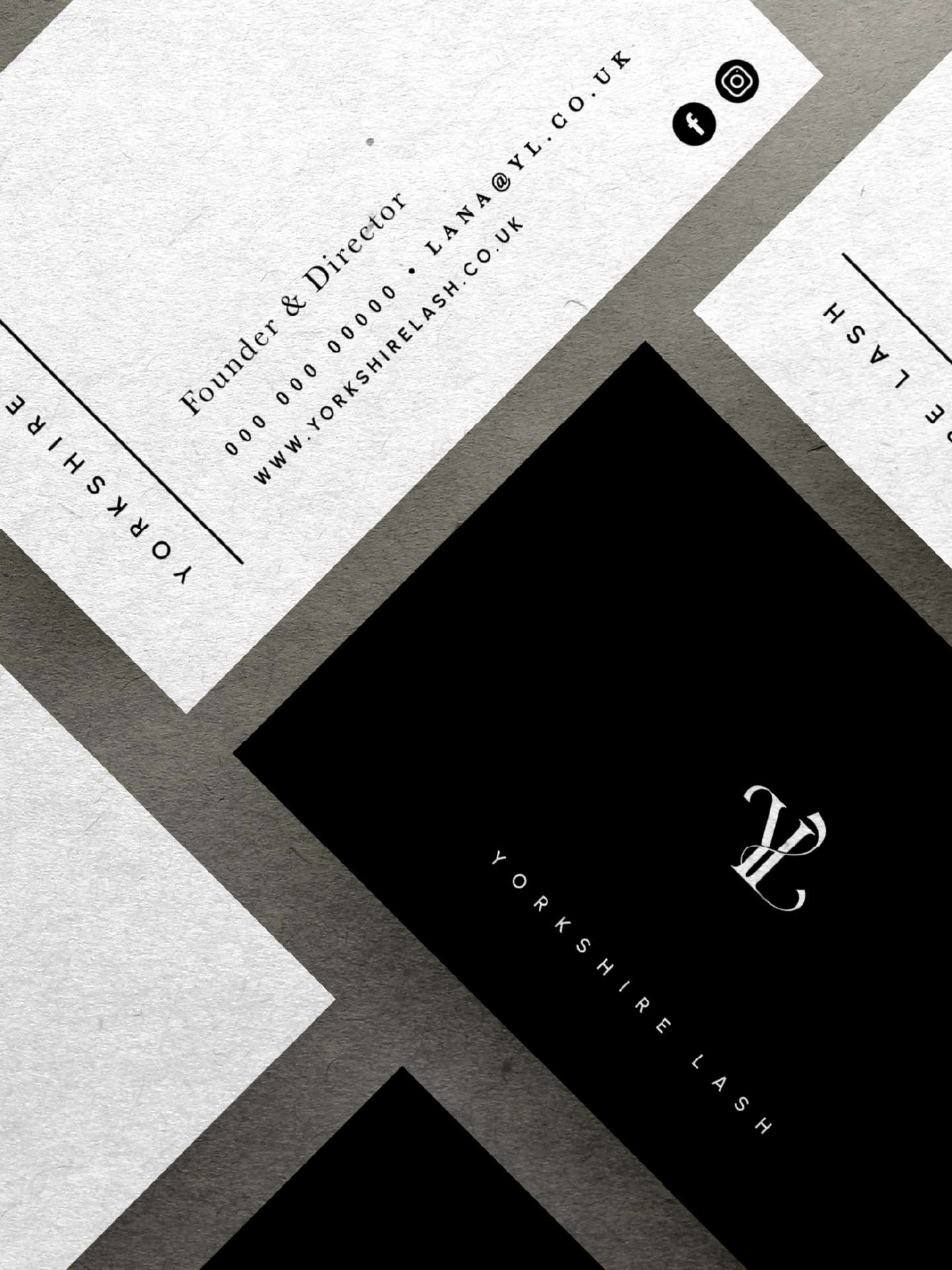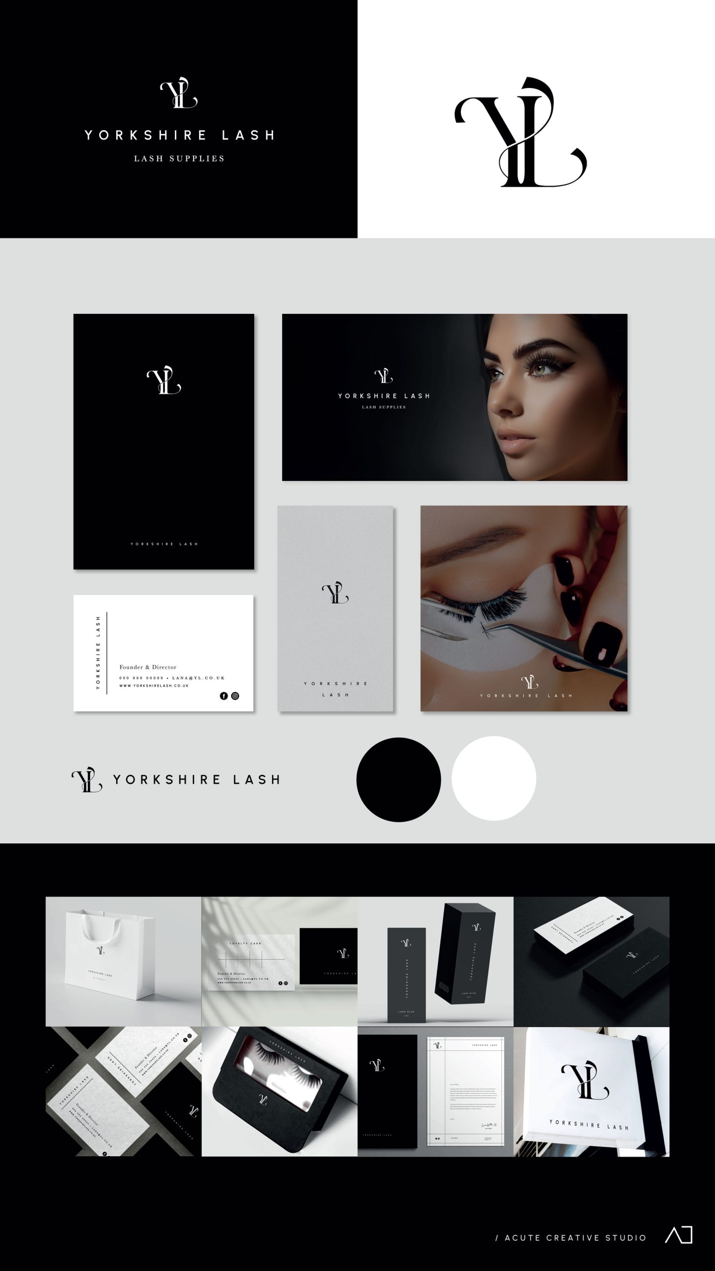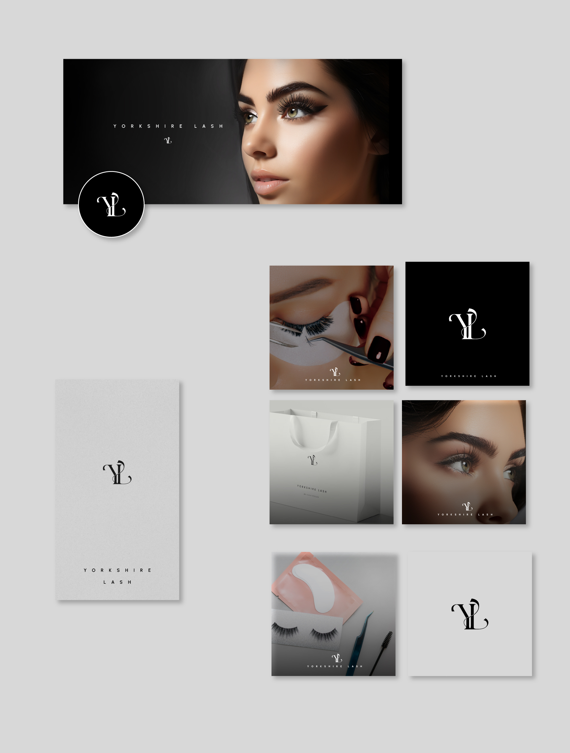 The designs combine sleek, modern aesthetics with timeless elegance, featuring a monochromatic colour palette and clean typography. The Yorkshire Lash logo symbolises refinement, professionalism, and the exceptional quality of their products.